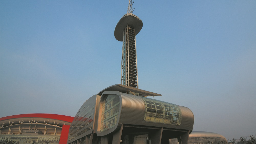 科技中心的设计创意是体育的力量和动感,设计灵感来自人类对崇高体育精神的向往,体现了体育精神在于对力量与速度的美好体验这一主题。科技中心款款起伏、延绵流畅的屋顶,看起来就像在玻璃大空间上方悬浮着一个个金属座舱。极具动感的观光塔是南京奥体中心的标志。观光塔高145m,观光平台距地面101.7 m,一次可容80人,置身观光平台内, 奥体中心、河西城区以及附近江景尽收眼底,令人心旷神怡。科技中心建筑面积约2.3万平方米,曾经作为大型赛事期间的新闻发布、新闻传送和会务等服务中心。赛后结合科技中心内部房屋构造,科技中心已升级为高端写字楼,共有商业办公用房140间,是河西地区创新技术型企业、小微企业的重要孵化平台。